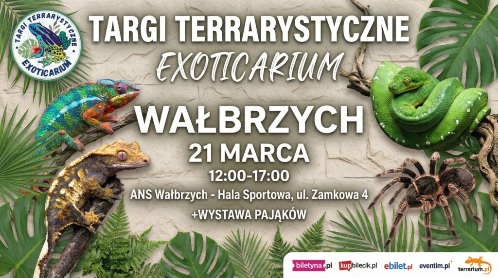 Już w marcu czeka nas nie lada wydarzenie. Exoticarium – Targi Terrarystyczne zawitają do Wałbrzycha. Będą węże, pająki, jaszczurki, żółwie i żaby.