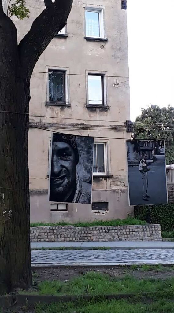 AN: Jako miasto pamięci, mit lokalny. Miasto ludzi, którzy tutaj byli dawno temu i ich indywidualnych historii. Również jako krajobraz przemysłowy, zmieniający się na przestrzeni lat. Nasze prace tworzą pewną kronikę – zbiór twarzy, miejsc i znaków pamięci. Wykorzystujemy w nich wizerunki mieszkańców, ale również widoki ulic, budynków, pejzaże czy pamiątki – są one związane z przedwojenną historią miasta. Takie miejskie duchy.