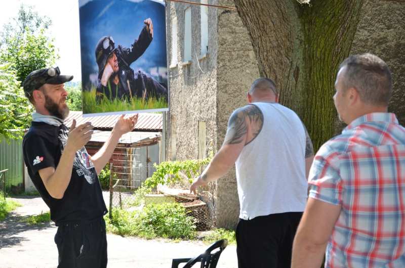 AN: Trudno dokładnie określić, kiedy to się stało. Jako grupa nieformalna, bez hierarchii i struktur, podejmowaliśmy różne inicjatywy jeszcze zanim wpadliśmy na pomysł nazwania się, określenia. Może było to w momencie pierwszej wspólnej pracy podczas uczestnictwa w projekcie „Czytanie miasta” w ramach ESK Wrocław 2016, do którego zaproszono nas wraz z podopiecznymi jednej ze świetlic środowiskowych. Albo później, gdy zespół osób spontanicznie włączających się w nasze przedsięwzięcia zaczął rosnąć. Ci ludzie zaczęli budować pewne grono wokół nas, najpierw przyglądając się, potem proponować wszelkiego rodzaju wsparcie, w końcu aktywnie uczestnicząc. Na FB pod nazwą GottesbergArt Kolektyw pojawiliśmy się w czerwcu 2020 roku, bo bardzo zależało nam na dotarciu do większej grupy mieszkańców w trakcie przygotowań do naszej pierwszej plenerowej wystawy fotografii. W otwartej przestrzeni, na skwerze przy skrzyżowaniu ulic Racławickiej i Sienkiewicza, zaprezentowaliśmy serię wielkoformatowych portretów Marka „Kermita” – przyjaciela Marcina, postaci znanej i na swój sposób barwnej. Wystawa nosiła tytuł „Ku pamięci” i była połączona z warsztatami dekorowania toreb bawełnianych przy użyciu szablonów z podobizną Marka i farb w sprayu. Za udział w warsztatach można było się odwdzięczyć przekazując datek na rzecz Fundacji Na Pomoc Zwierzętom. Ponad 20 fotografii zawiesiliśmy na linach obwiązanych wokół drzew okalających park. Pożyczyliśmy też namiot eventowy od OSiR Boguszów-Gorce, ktoś przytargał sprzęt audio-video, sąsiedzi użyczyli energii elektrycznej i wyświetlaliśmy klip specjalnie na tą okazję zmontowany, oczywiście z Markiem w roli głównej. Autorem zdjęć jest Marcin, klip zrobił Paweł S., warsztaty prowadziłam ja. Tadek pomagał z prądem i sprzętem, Waldek z transportem i wspierał technicznie. Prezeska fundacji, Asia, razem z wolontariuszką ogarniały zrzutkę. W sumie zrobiła się z tego fajna akcja sąsiedzko-społeczna, ciekawe spotkanie pod chmurką. To chyba był ten moment, gdy Kolektyw zaczął się zawiązywać, a reakcja ludzi na wydarzenie pokazała nam, że można wspólnie coś większego zrobić w mieście, a nie tylko tworzyć indywidualne prace, często „do szuflady”.